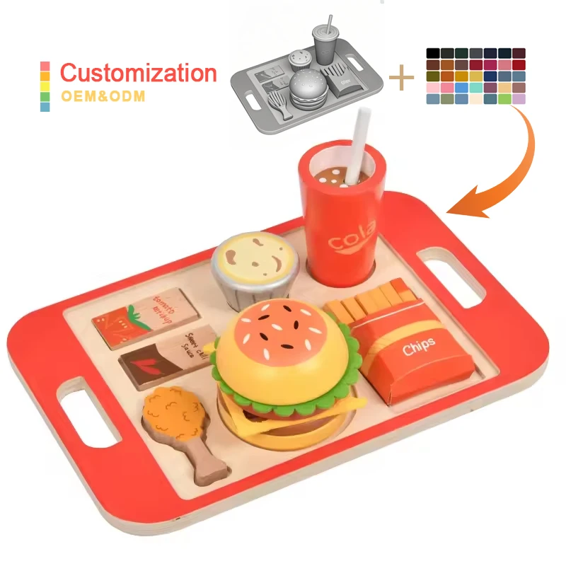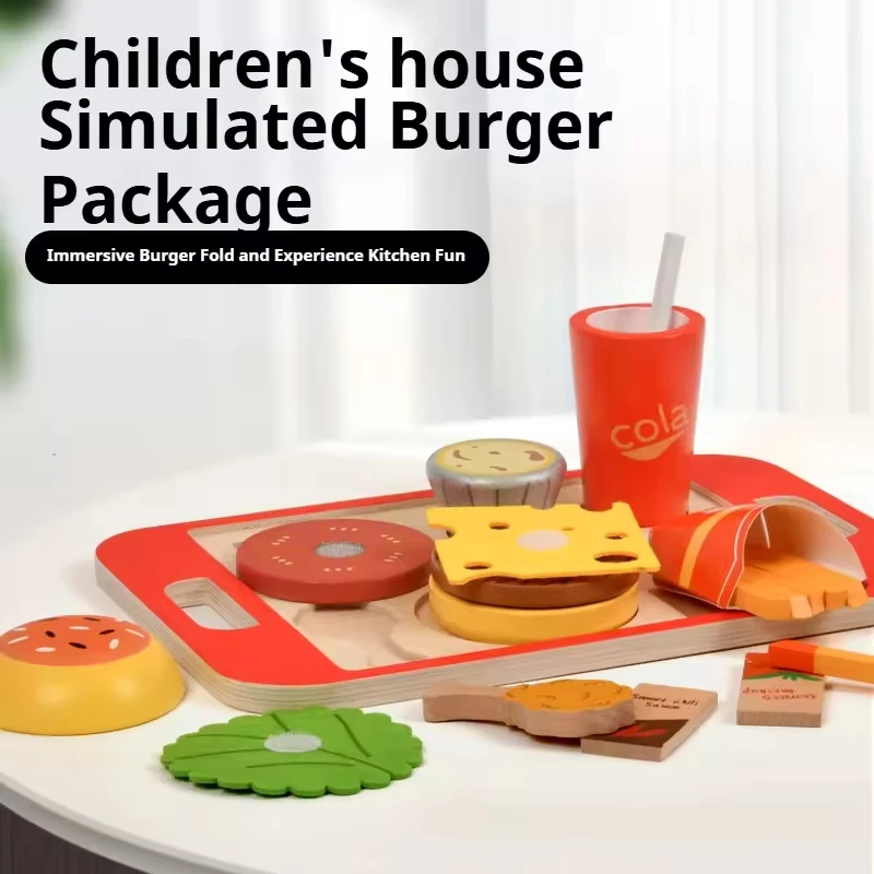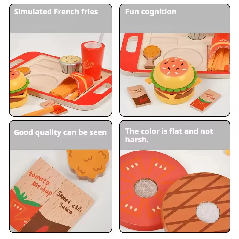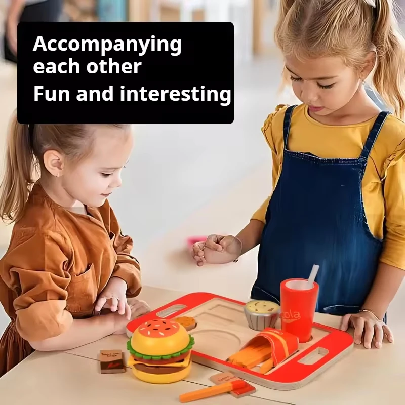 Montessori Wooden Hamburger Sets Early Educational Play Food Toy House Enhancing Kitchen Cognitive Skills for Kids Boys & Girls